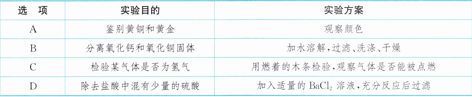 7. 利用物质的性质差异可以实现物质的鉴别和除杂。下列实验方案不能达到实验目的的是 (