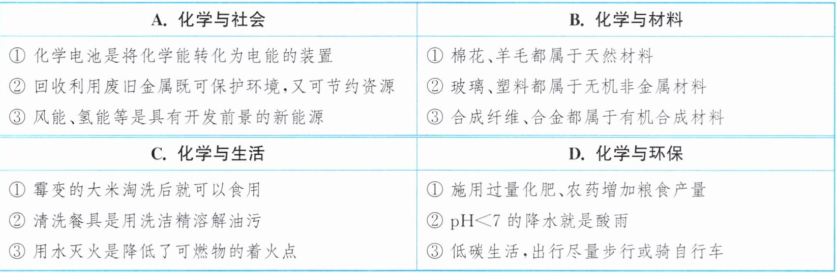 9. (2024·宿迁沭阳一模)下列对主题知识归纳正确的一组是 (