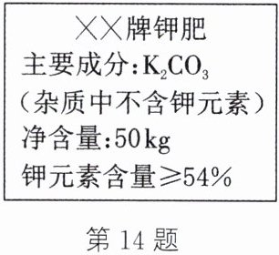 14. 如图是某品牌钾肥的商品标签,某兴趣小组同学为了检测该钾肥中钾元素的含量是否属实,取