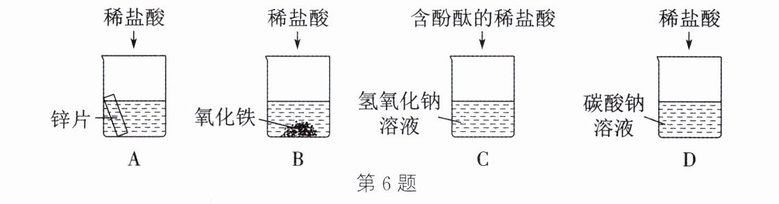 6. 化学学习小组同学在探究盐酸的化学性质时,进行了如图所示的实验。