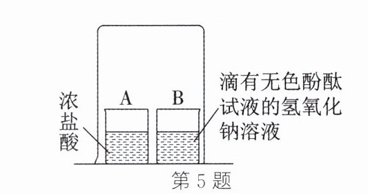 5. (2024·陕西)如图实验进行一段时间后,观察到烧杯 B 内溶液已变为无色,则下列有关说法正确的是