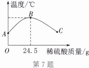 答案:7.(1)氢氧化钠固体溶于水也会放出热量 (2)①放热 稀硫酸和氢氧化钠溶液恰好完全反应 ②变小 ③Na⁺、H⁺