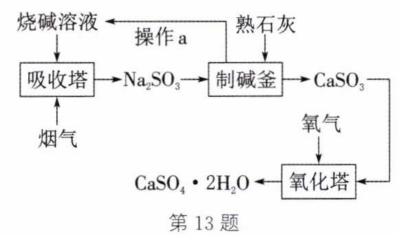 答案:13.(1)过滤 (2)$\mathrm{SO_2}+2\mathrm{NaOH}=\mathrm{Na_2SO_3}+\mathrm{H_2O}$ (3)$\mathrm{NaOH}$ (4)$\mathrm{Ca(OH)_2}$