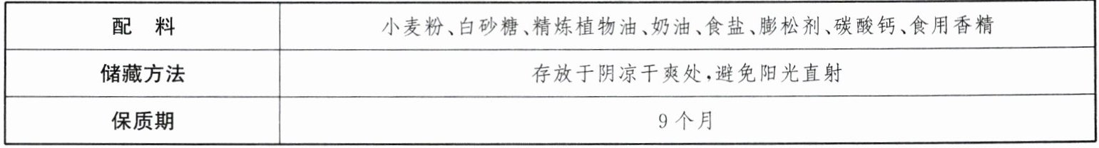 。(7)某饼干包装袋上的部分说明如表: