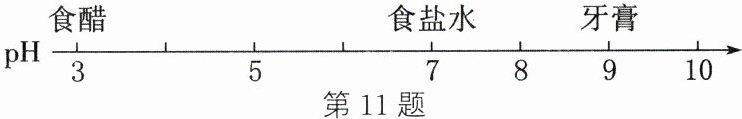 答案:11.(1)牙膏 (2)铁锈溶解,溶液变为黄色 Fe+2HCl=FeCl₂+H₂↑ (3)Ca(OH)₂+CuSO₄=Cu(OH)₂↓+CaSO₄ (4)水分(或水蒸气) 二氧化碳