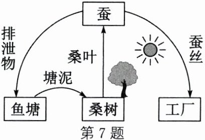 7.如图所示为某地可持续农业生态系统——“桑基鱼塘”的模式,以下说法错误的是