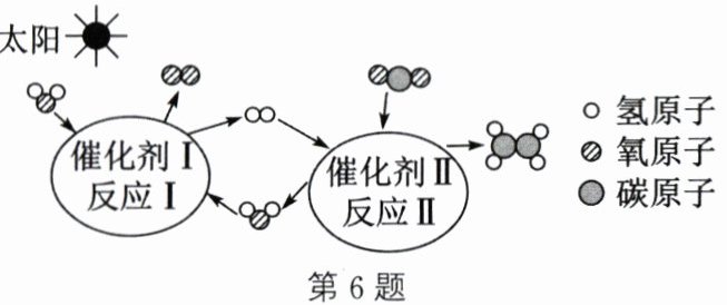 6. 科学家利用太阳光在催化剂Ⅰ表面高效分解水后,再利用催化剂Ⅱ将二氧化碳转化为乙烯,其反应的微观示意图如图。下列说法正确的是