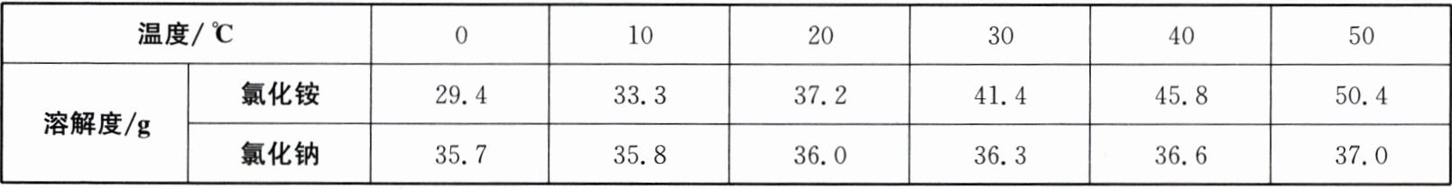 7. 如表为氯化铵和氯化钠在不同温度时的溶解度。下列说法正确的是(
