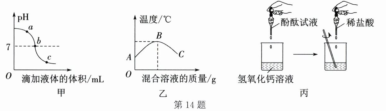 14. 某学习小组的同学将氢氧化钙溶液与稀盐酸两种溶液混合,发现无明显现象。为证明氢氧化钙溶液与稀