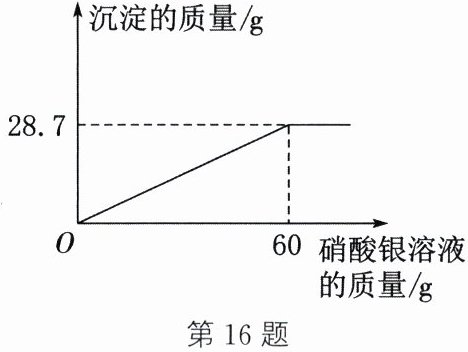 解析:(1)由图可知,两种物质恰好完全反应时,消耗60g硝酸银溶液,产生28.7g氯化银沉淀,则所得溶液的质量为50g+60g-28.7g=81.3g。