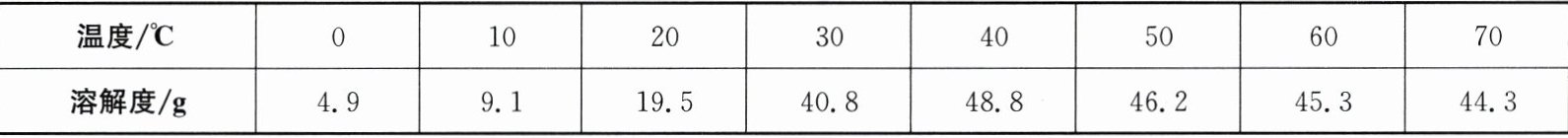 C. 40℃后溶解度随温度升高减小,70℃时为44.3g,故80℃时可能小于44.3g,C正确;