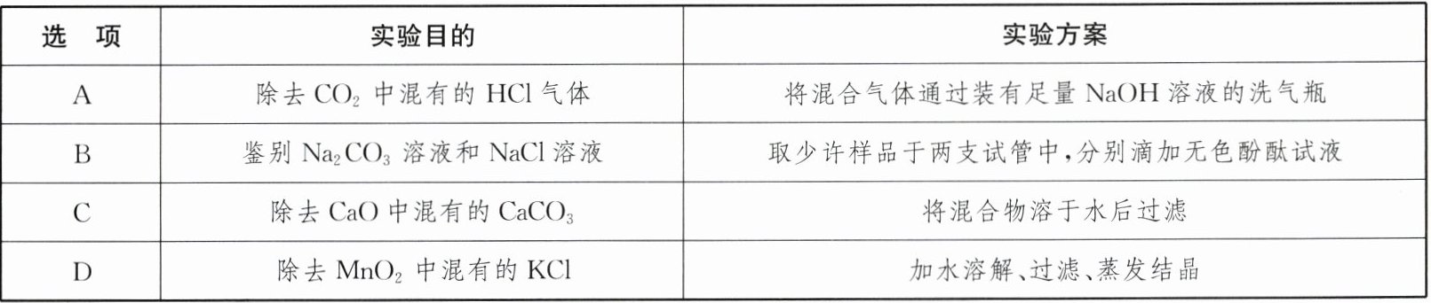 9. 下列实验方案中,能达到实验目的的是 (