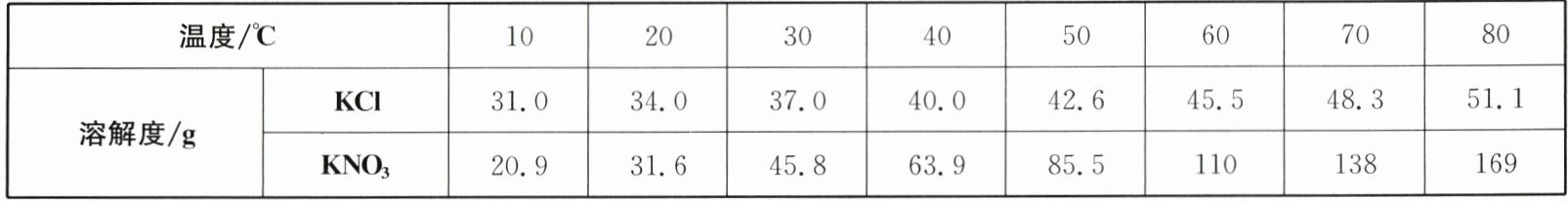 12. (5 分)$KCl$和$KNO_{3}$在不同温度下的溶解度数据如表。