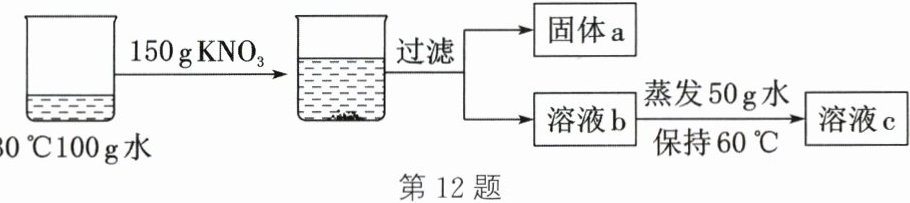 (结果精确到$0.1\%$)。(4)$30℃$时,在$100\mathrm{g}$水中加入$KNO_{3}$固体,进行如图实验。