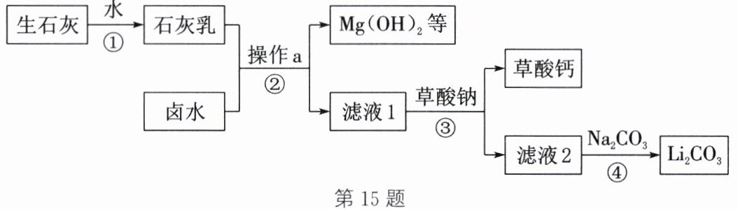 (写一种即可)。答案:15.(1)$\mathrm{CaO + H_2O = Ca(OH)_2}$ (2)过滤