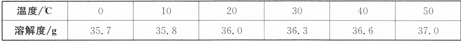 8. 影片《闪闪的红星》中潘冬子面对敌人对食盐的疯狂封锁,机智勇敢,不畏艰险,用河水将竹筒里的食盐全部溶成盐水,再用棉袄吸收,最终将食盐送给了红军。结合如表所示的氯化钠的溶解度回答有关问题。