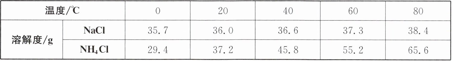 7. 如表所示为$NaCl$、$NH_4Cl$在不同温度时的溶解度。