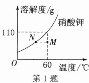 B.$60\degree C$时,$M$点的硝酸钾溶液是不饱和溶液