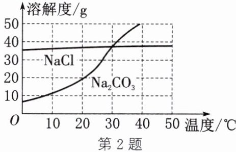2. (2024·连云港)我国盐湖地区有“夏天晒盐($NaCl$),冬天捞碱($Na_2CO_3$)”的做法。$NaCl$、$Na_2CO_3$的溶解度曲线如图所示,下列说法中正确的是 (