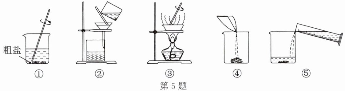 5. 小文同学做粗盐(含难溶性杂质) 提纯的实验并计算精盐的产率, 如图所示为部分操作示意图。请回答下列问题: