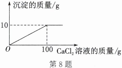 答案:8.(1)10 (2)解:设纯碱样品中$ Na_2 CO_3$的质量为$x$。