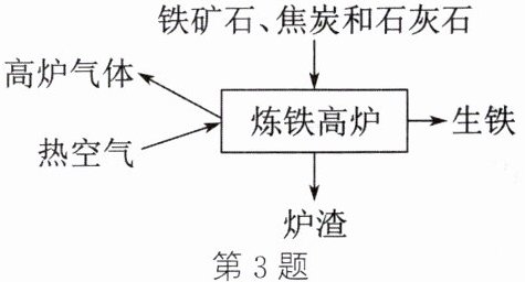 3.(2025·盐城模拟)工业上把铁矿石、焦炭和石灰石一起投放高炉内,从下方通入热空气,最后得到生铁(如图)。下列说法中正确的是 (