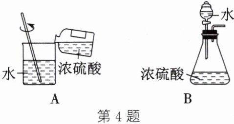 4. 如图所示是两种稀释浓硫酸的操作,回答下列问题: