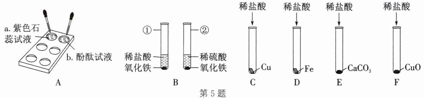 。(填字母)(2)A中,在点滴板的a、b穴中滴入酸溶液后,溶液变红的是