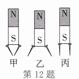 12. 如图所示,磁体吸住两根铁钉的一端,那么这两根铁钉的另一端将 (