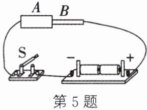 5. 如图所示,导体$A$、$B$是由同种材料做成的,$A$和$B$等长,但$A$的横截面积比$B$大。当$S$闭合后,在相同的时间内,下列叙述正确的是