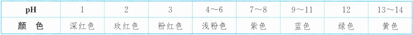 实验操作。【查阅资料】紫甘蓝指示剂在不同 $ \mathrm{pH} $ 时的颜色变化如下:
