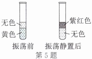 5. 向 5 mL 碘的水溶液(黄色)中加入 2 mL 汽油(无色),振荡静置后,实验现象如图所示。由该实验不能得出的结论是(