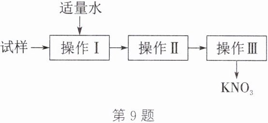9. (教材P30 练习与实践第7题变式)实验室有一包含少量氯化钠杂质的硝酸钾固体,某校化学兴趣小组的同学为了得到较纯净的硝酸钾,设计了如图所示的流程。下列分析中正确的是 (