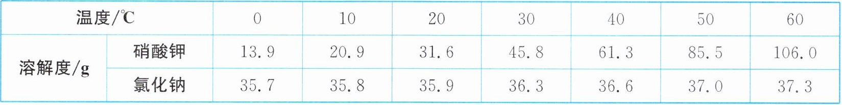 8. (2024·宿迁改编)氯化钠、硝酸钾在不同温度时的溶解度如表所示。下列说法正确的是 (
