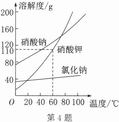 4. (2025·重庆)硝酸钠、硝酸钾、氯化钠三种物质的溶解度曲线如图所示。