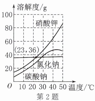 2. (2025·南充改编)几种固体的溶解度曲线如图所示,下列说法正确的是(