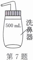 7. (2025·苏州改编)洗鼻液有助于修复鼻黏膜。配制方法:向如图所示洗鼻器中加入4.5 g NaCl,加少量水振荡,继续加水至洗鼻器的500 mL刻度处,摇匀。