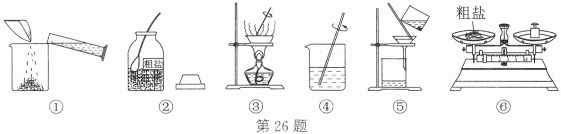 26. 某兴趣小组同学做粗盐(只含有难溶性杂质)提纯实验,并用所得精盐配制50 g 6%的氯化钠溶液。