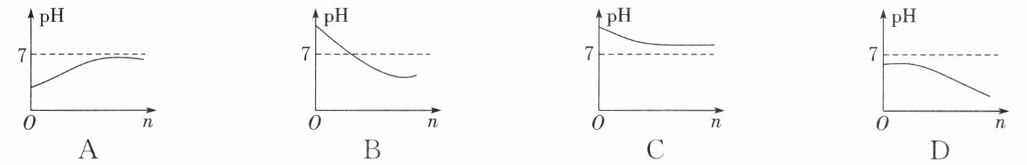7. (地域特色)有些滩涂地区的土壤呈碱性,当地农民常用引进内河淡水浸泡再排水的方法改良土壤。若以土壤pH为纵坐标,浸泡水次数(n)为横坐标,下列图像正确的是(