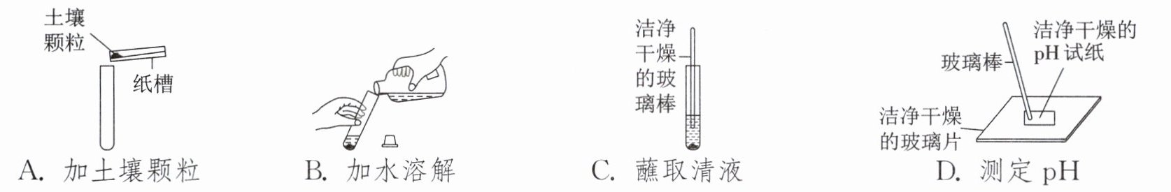 5. (2025·遂宁)科学种田,助力乡村振兴。为探究土壤酸碱性对农作物生长的影响,丽丽同学在实验室测量土壤样品酸碱度时操作不正确的是(