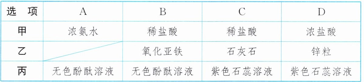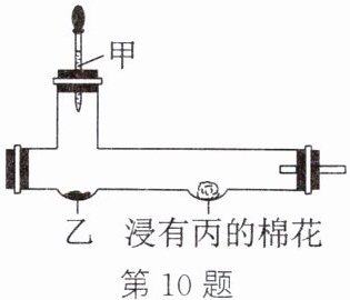 10. (2024·苏州工业园区模拟改编)某实验小组同学用如图装置进行微型实验。按表中选项加入试剂,实验时滴入甲,浸有丙的棉花不变红的是(