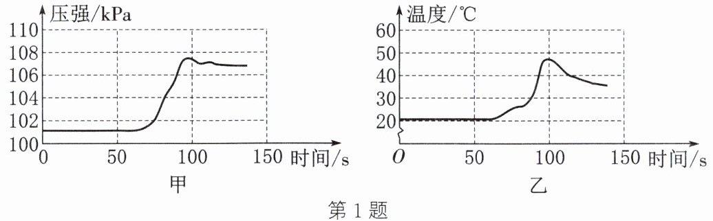 1. 将未打磨的铝片和稀盐酸放入密闭容器中,用传感器探究反应过程中压强和温度的变化,分别如图甲、图乙所示。从图中所获信息不正确的是(