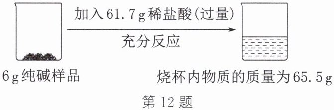 12. (2025·江西改编)实践小组为测定某品牌纯碱样品中${Na_{2}CO_{3}}$的质量分数,进行了如图实验(杂质不参与反应)。