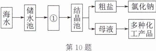 10. (2025·眉山改编)如图所示是用海水晒盐并获得氯化钠等产品的大致过程。