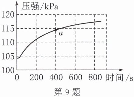 9. (2025·湖南)VC泡腾片中含有碳酸氢钠。室温下,VC泡腾片与足量稀盐酸在密闭容器内反应,测得容器内压强随时间变化的曲线如图所示。下列说法正确的是(