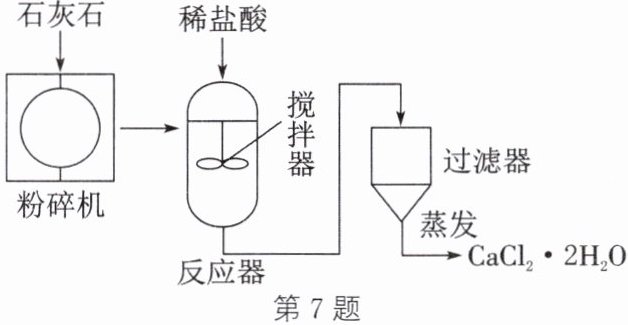 7. (2025·连云港)工业上生产 $ {CaCl_{2}· 2H_{2}O} $ 的主要流程示意图如图所示。下列说法正确的是(