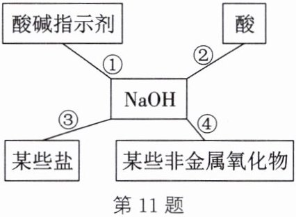 11. 小明同学用思维导图的形式总结了NaOH的四条化学性质,如图。请回答下列问题: