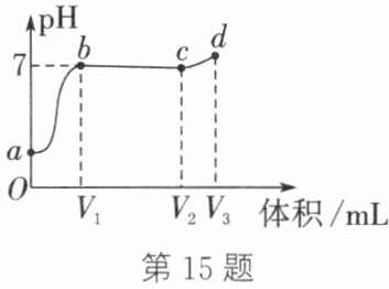 15. (创新考法)向含有9.5gMgCl₂和3.65gHCl的混合溶液中,逐滴加入一定溶质质量分数的NaOH溶液,溶液的pH随加入NaOH溶液的体积变化曲线如图所示,下列说法错误的是(