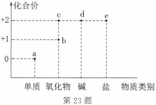 23. (教材P81本章作业第6题变式)价类二维图从元素化合价和物质类别两个维度认识物质。如图是铜元素的价类二维图,下列说法不正确的是(