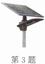 3. 关于某可再生能源的描述如下:该能源储量巨大,但阴雨天等因素会影响其使用,如图为该能源在生活中的应用。该能源是 (